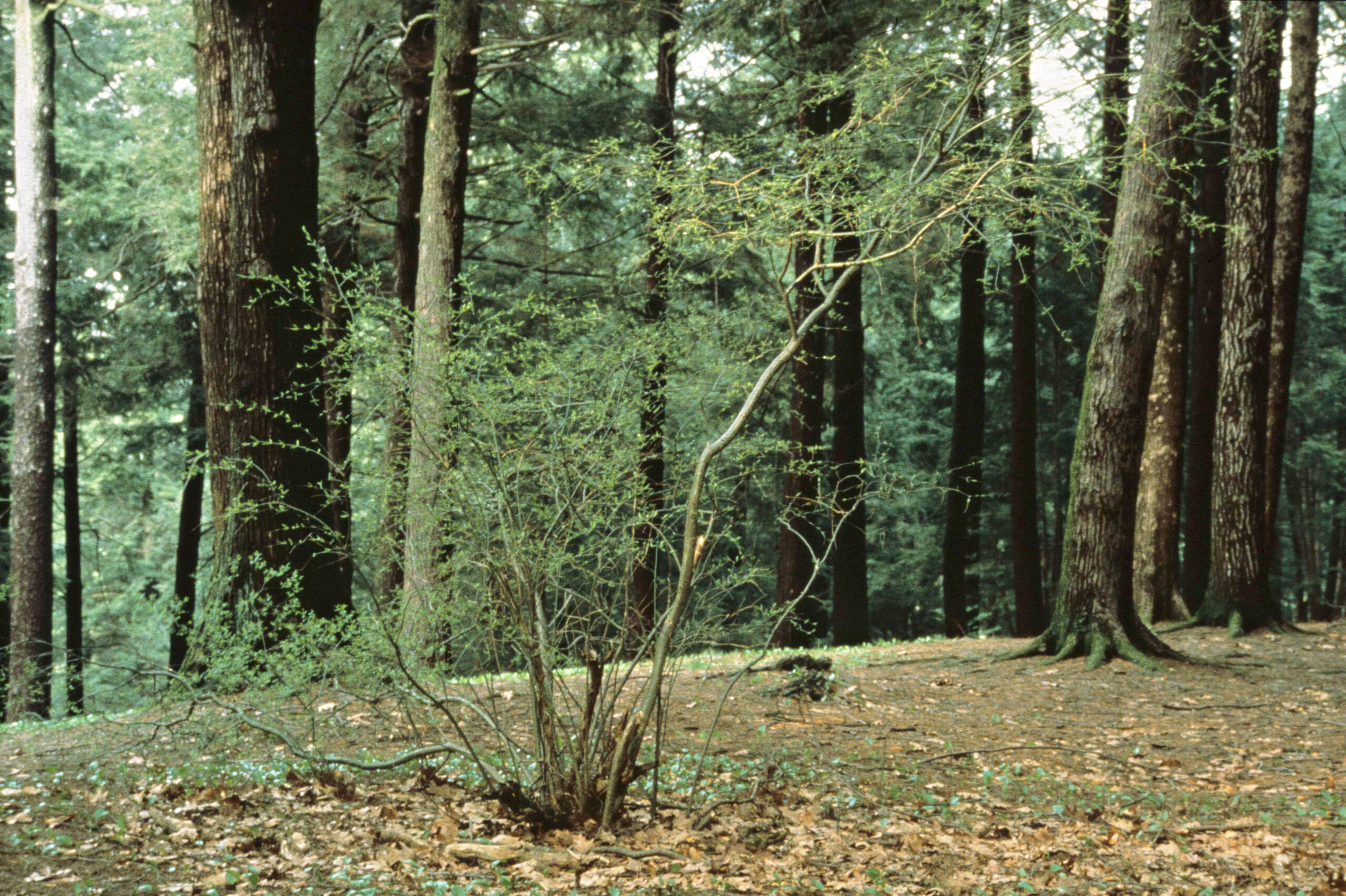 Our shrub has grown among the hemlocks on their eponymous hill since accessioning in 1946. Its Harvard history goes deeper, however. Asa Gray acquired it in 1843 during an excursion to Southern Appalachia. The plant grew in the Harvard Botanic Garden until the garden’s extinction. That the plant—a centenarian then—survived transplant to its new environment is a testament to its tenacity, and to the determination of the collections staff.