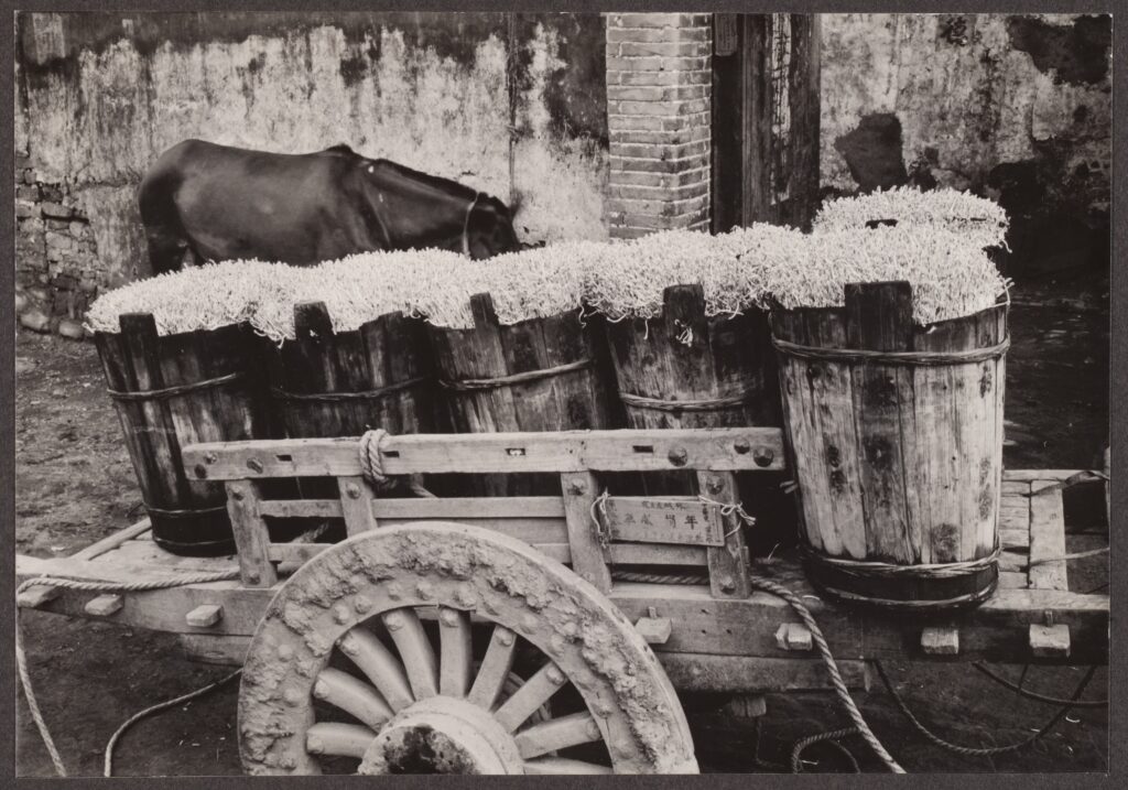 Frank Meyer’s photographs primarily reflect his main assignment in Asia for the United States Department of Agriculture, to collect plants of economic value that could be grown profitably in America. He understood that many of the plants were entirely new to Western audiences and as such, he devoted much effort to document the uses that the local people had for a variety of food products and building materials. He took pains to write detailed descriptions of the preparation of different dishes, such this one for mung bean sprouts that accompanied the lower photograph above, “A cart full of tubs of bean sprouts, produced by the humble mung bean. These bean sprouts are eaten as a vegetable, when scalded, and they are a very tasteful product when served cold as salad with some soy-bean, vinegar and oil sprinkled over them. Sixteen or seventeen catties of dry beans supply from fifty to sixty catties of sprouts.” Meyer’s photos were taken with an inexpensive snapshot camera which allowed him to be spontaneous and very much in the moment. His image of boatmen on the Huang Ho clad only in loincloths has an almost sculptural quality as the men lean into their work. He describes the scene thus, “On the Huangho, near Chao yi, Shansi. Incidents of travel. On the Yellow River, being in the deep water now where the boats float down with the current. Only paddling is practised now in the shallow places the boat is pulled by 8 or 10 men. These hard working fellows earn only two taels per month (U.S. gold $1.70) and receive board and lodging, but what a board and lodging!”