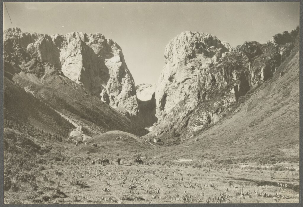 For three years Wilson explored western Hupeh [Hubei] and western Szechuan [Sichuan]. He returned to Boston in 1909 via … London, where he spent several months developing the glass-plate negatives and seeing for the first time his 720 images…. [H]is second Arboretum expedition, which began in 1910, was to collect cones and conifer seeds in the central and southwestern parts of China. In September of that year, while he was traveling between Sungpan and Chengdu [Sichuan], a landslide hit the expedition group, crushing Wilson’s leg. After several months in a hospital at Chengdu, Wilson returned to Boston in March 1911…. Before the accident, however, he had managed to take 374 images….