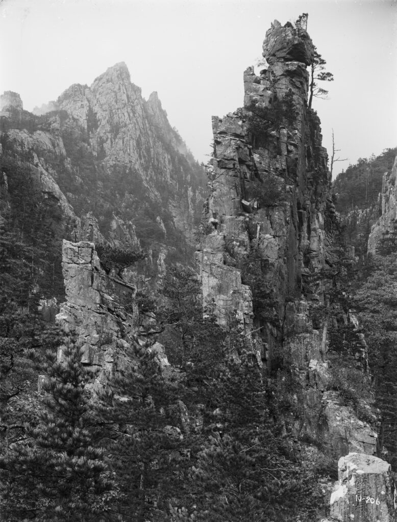Wilson’s 1917-1919 trip to eastern Asia was his most productive, concentrated primarily on exploring Korea, with sojourns in Japan and Taiwan. He spent the bulk of 1917 and half of 1918 traversing the length and breadth of the country and documented his travels with about 300 photographs taken with his Sanderson camera. He visited locations of great natural beauty such as the Geumgengsan or Diamond Mountains which today lies just over the North Korean border of the Demilitarized Zone. These photographs are particularly poignant because most of the religious institutions there were destroyed by bombing in the Korean War. His most rigorous time in the field was an extended exploration in far northern Korea in August and September 1917. During this time in the field, he traveled about 500 miles and much of that on foot. This area today is in North Korea and inaccessible to botanical exploration. Sargent’s admonition to William Purdom that he should photograph the landscape, “as the world knows little of the appearance of those parts of China (or in this case Korea) which you are to visit,” is particularly apt, because between war and the decades-long closure of North Korean society this area is terra incognita.