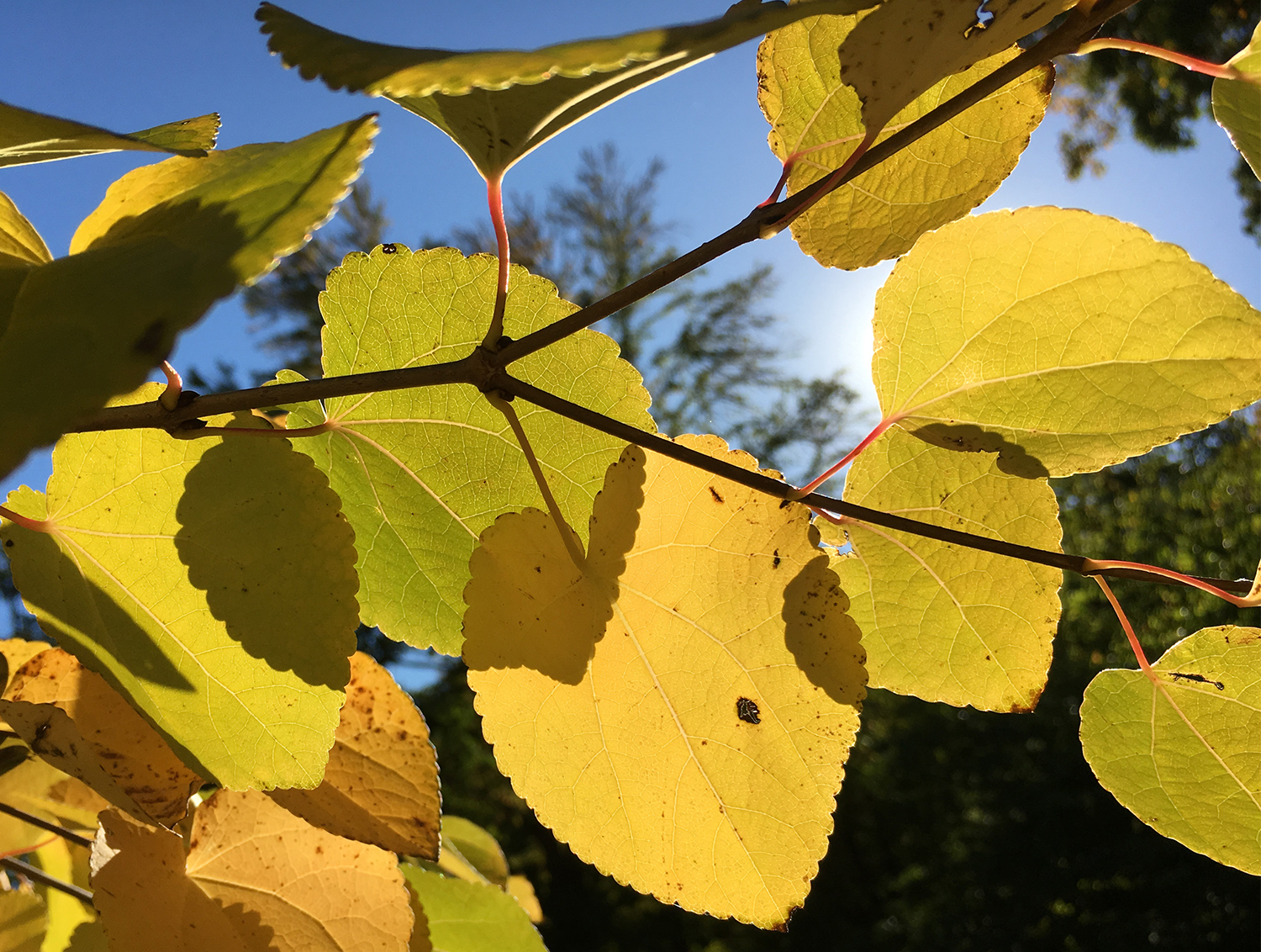 This spot illustrates that the Arboretum always changes, how in a timeworn linden collection, old trees give way to new. Sometimes, a storm topples a tree, and in other instances we remove because a replacement at the ready is of greater value, has a new story to tell. This Mongolian linden (Tilia mongolica), planted in 2016, grew from seed I collected with colleagues on a NACPEC (North America China Plant Exploration Consortium) expedition to Hebei, China. Already, it shows great promise to become an attractive and vigorous landscape tree, bearing bright golden-yellow autumn leaves. It also has a wealth of data we collected in the field that hot, dry day in 2010: photographs of the mother plant, the site’s coordinates and elevation, type of habitat and soil, even a list of nearby plant species. Judging by its growth rate, this tree will soon look like it has always been here.
