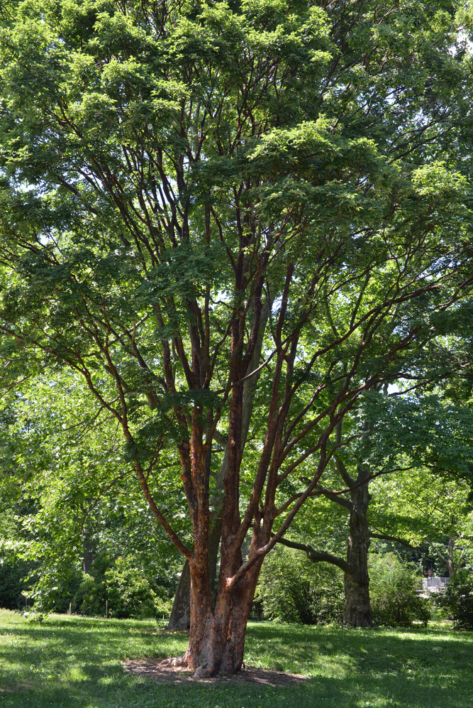 This Persian ironwood (Parrotia persica) is one of the largest known in cultivation, and is also one of the oldest plants in the Arboretum’s collections. It was a gift from the Harvard Botanic Garden in 1881, arriving in December of that year. Propagator Jackson Dawson coaxed the rootless stems to flourish, and soon thereafter this individual was planted among others in its family. Beyond the size, its mottled bark and striking autumn leaf color always stop me in my tracks. Its source–the University’s now-vanished, on-campus garden–reminds me of the generosity of public gardens in sharing plant material with one another and with scholars. The Arboretum maintains that tradition, providing plant material and plant knowledge to researchers, teachers, and visitors the world over.